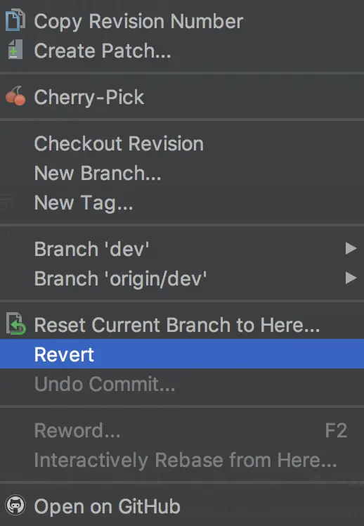 我们可以打开Log找到那个功能的提交记录,点击Revert