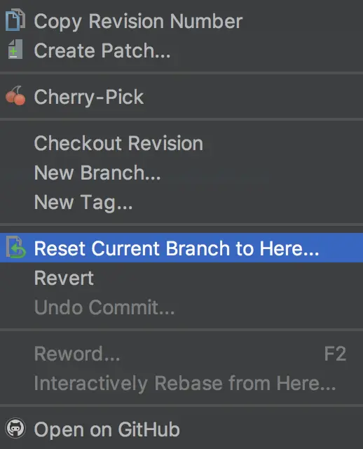 我们可以打开Log找到那个功能的提交记录,点击Rest Current Branch to Here...