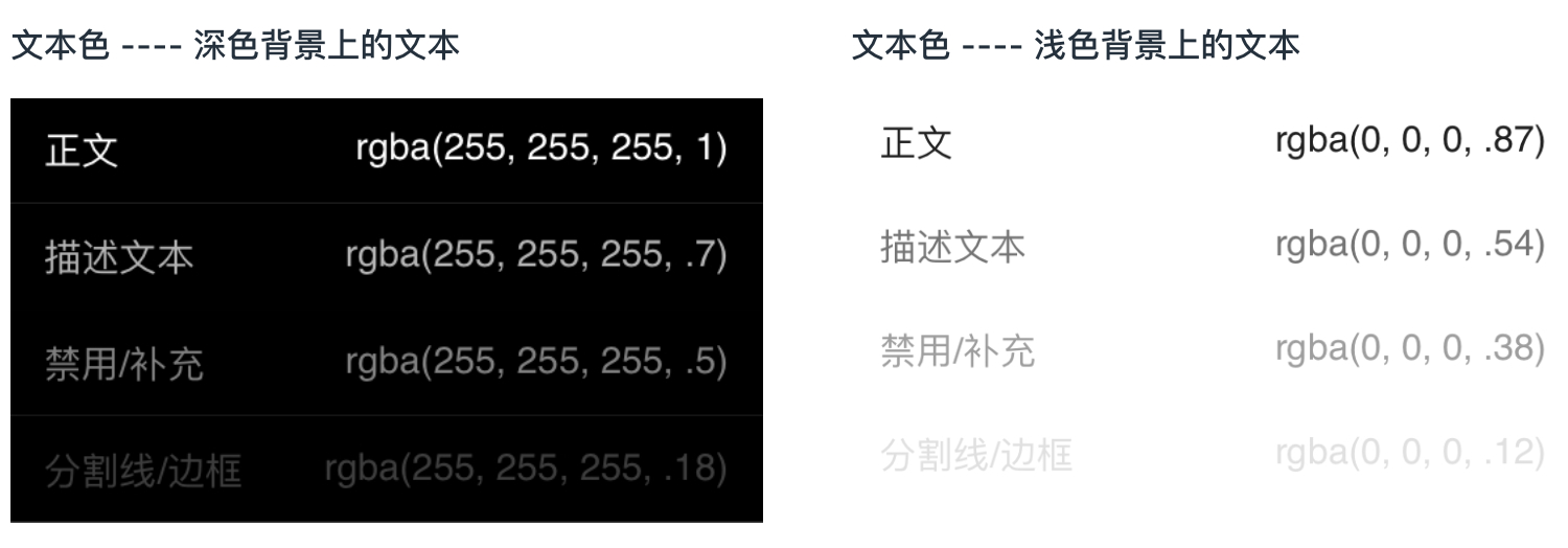 使用不同半透明度的文本,用于区分标题、正文、描述文本、提示文本和icon。这样做可以让读者阅读起来有一定的优先级关系,可以让信息层次鲜明,有助于用户理解关键信息,减少阅读时候的疲劳感。