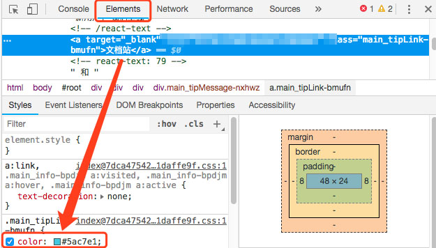 打开控制台,选中一个 文本元素 然后在 Styles 中找到 color 属性,点击 颜色值,可以看到一个调色板。