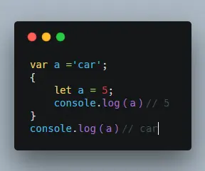 这类似于var但有一些明显的差异。因为它是块作用域,所以可以声明具有相同名称的新变量而不影响外部变量。