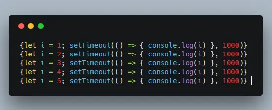 如果您将var换为let那么一切都会改变。现在,每个循环创建一个新的块作用域,其中i的值绑定到该循环。