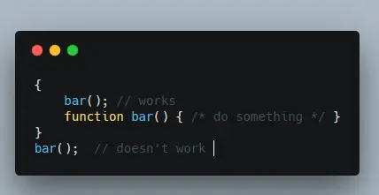 现在,我们有块作用域和两个绑定到块的新变量声明。