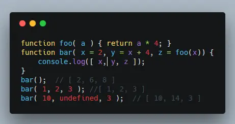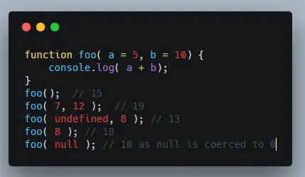 现在可以使用默认参数定义函数。使用默认值初始化缺失值或未定义值。请注意 - 因为null和false值被强制为0。