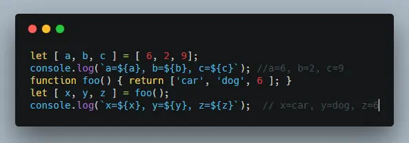 解构是将等号的左侧的数组或对象拆开的过程。数组或对象可以来自变量、函数或方程式。
