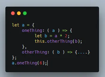 a.oneThing(6)时,this.otherThing( b )引用失败,因为this没有指向对象a,而是指向箭头函数块作用域。如果您使用ES6语法重写之前的代码,请注意这一点。