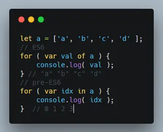 ES6添加了一种迭代数组中每个值的方法。这与for ... in循环键/索引的现有循环不同。