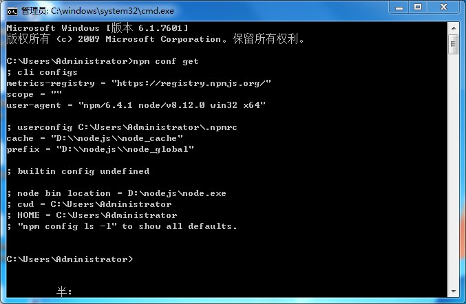 常用命令 npm conf get 获取全部配置文件信息 显示如上信息 NodeJS 刚下载后的配置文件如下