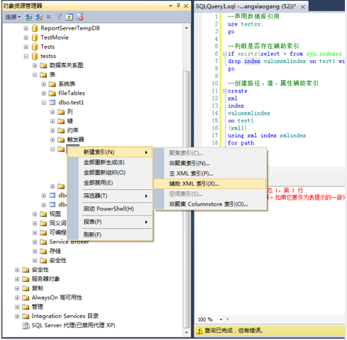 5、创建辅助XML索引的前提是必须存在主XML索引,辅助XML索引用于增强搜索的性能。