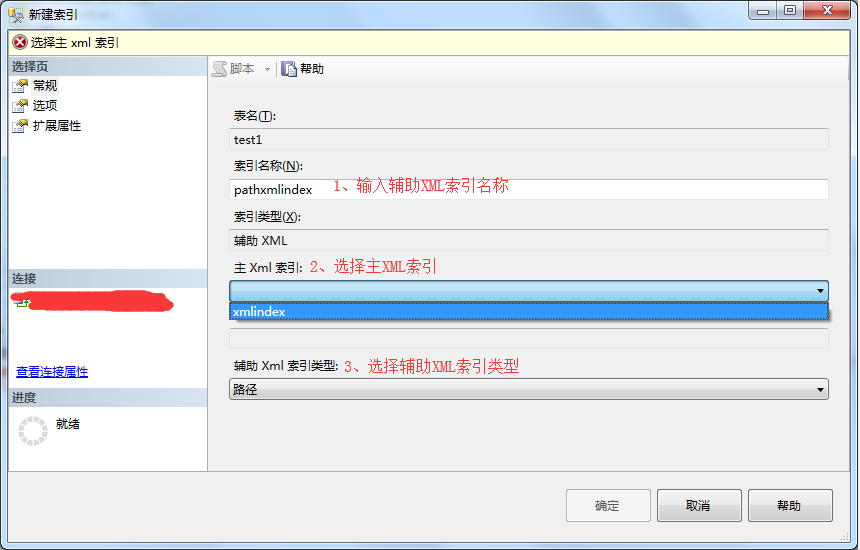 execute sys.sp_addextendedproperty N'MS_Description',N'第一个属性辅助XML索引',N'schema',N'dbo',N'table',N'test1',N'index',N'propertyxmlindex';