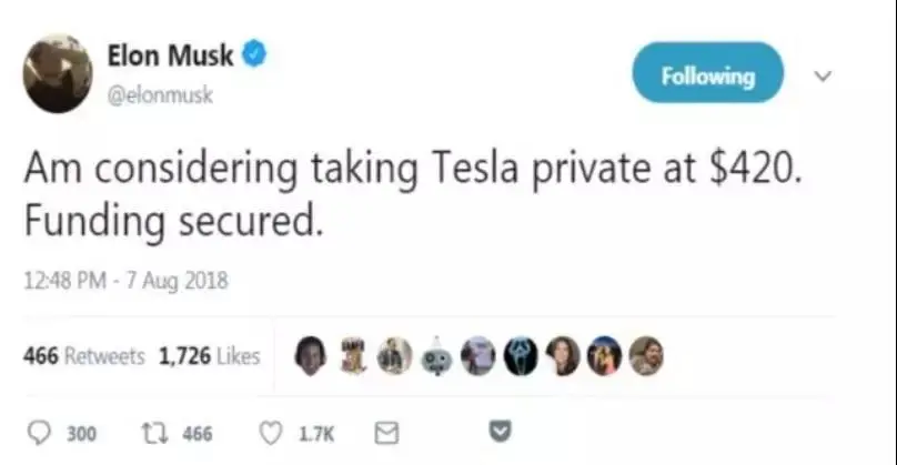 17天,马斯克的一场“特斯拉私有化”独角戏