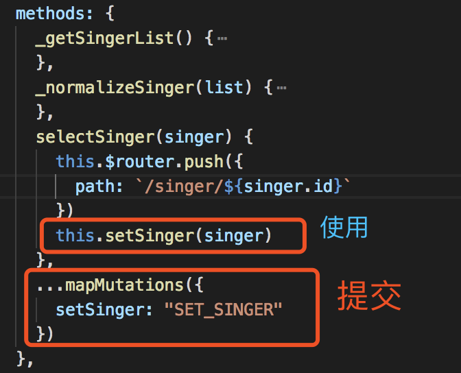 使用 mapMutations 辅助函数将组件中的 methods 映射为 store.commit 调用