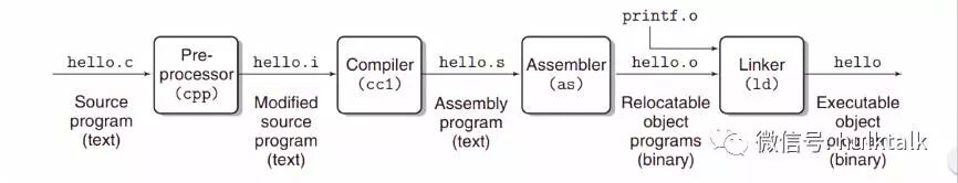 首先,我们开发的hello.c存储在磁盘上,我们首先编译它,得到可执行文件hello: