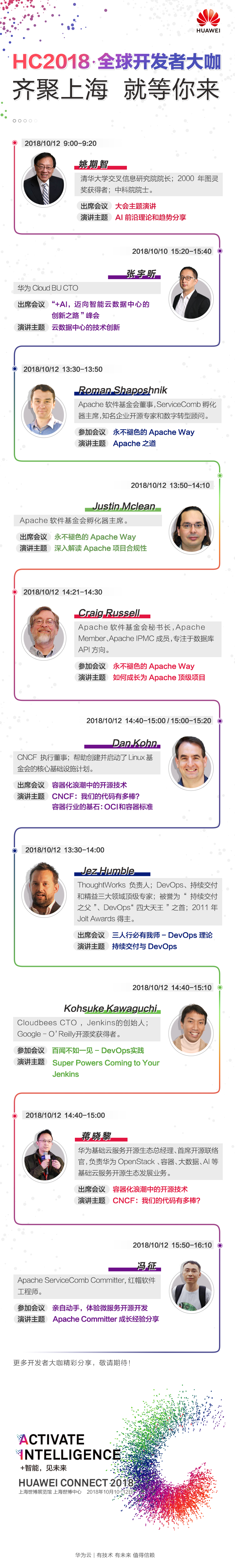话不多说,我们直接上干货,为大家整理了HUAWEI CONNECT 2018多位开发者大咖的演讲信息。诚意满满。