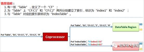 一是使得IndexTable Region和对应的DataTable Region拥有相同的StartKey,这样便可将StartKey作为两个Region的关联依据;