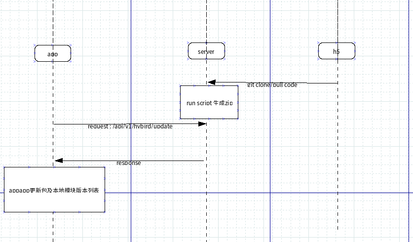 app 首先将本地维护的最新的模块及版本列表上传给服务器,服务器一一对比服务器的zip包版本号,检测到需要更新的zip包,reducer后返回给APP。