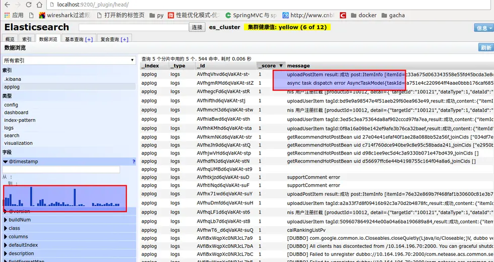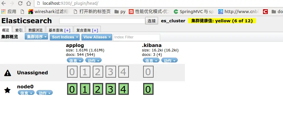 可以看到node0这个节点中有两个索引(前提条件已经新建索引且有数据了):applog .kibana,然后点击数据浏览,选中applog索引,可以看到applog索引下存储的日志。