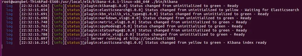 root@wangbei-ThinkPad-E560:/usr/local/elk/kibana-4.6.1-linux-x86_64# ./bin/kibana