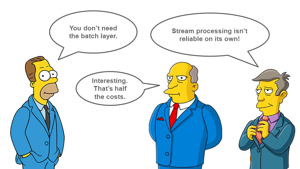 以下是大数据争论中的重要内容:仅仅因为你有锤子并不意味着这是工作的正确工具。批处理和流处理是两种不同的模型,它不是二选一的游戏,它是关于如何确定哪一种更适合您的用例的判断。