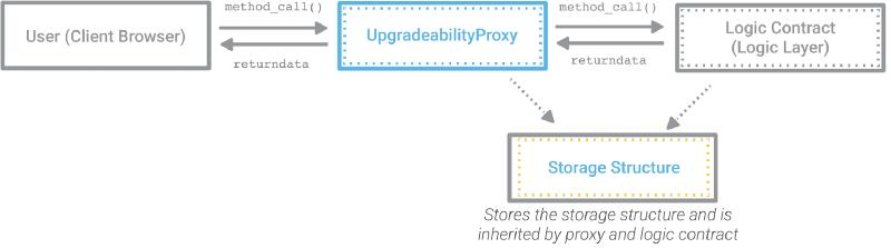 - 存储结构(Storage structure):它包含了存储结构,并会由代理合约和逻辑合约所继承,以便它们的存储指针能够在区块链上保持同步;