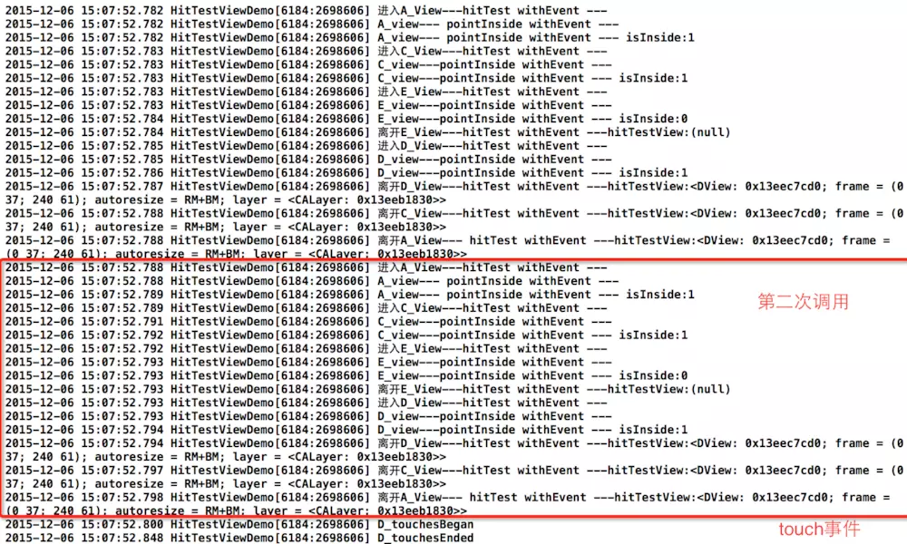 NSLog(@"离开A_View--- hitTest withEvent ---hitTestView:%@",view);
