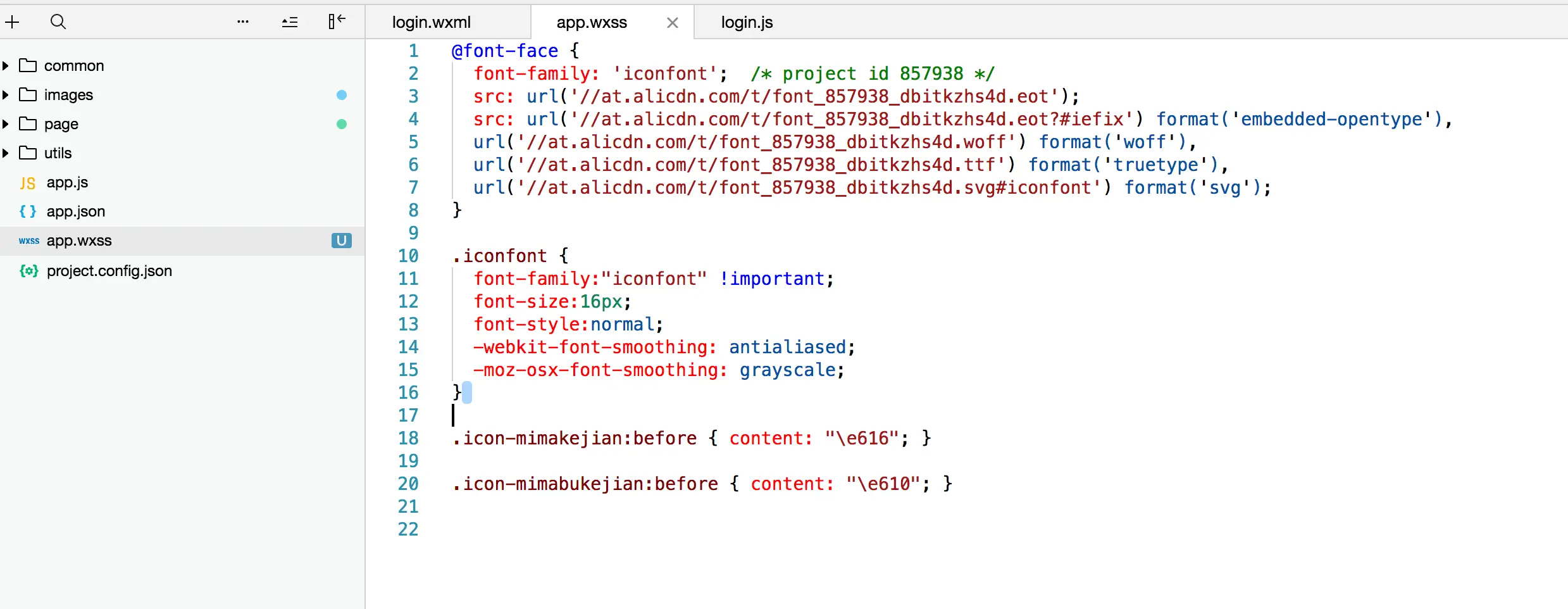 在微信小程序中引入iconfont图标,利用icon标签来实现