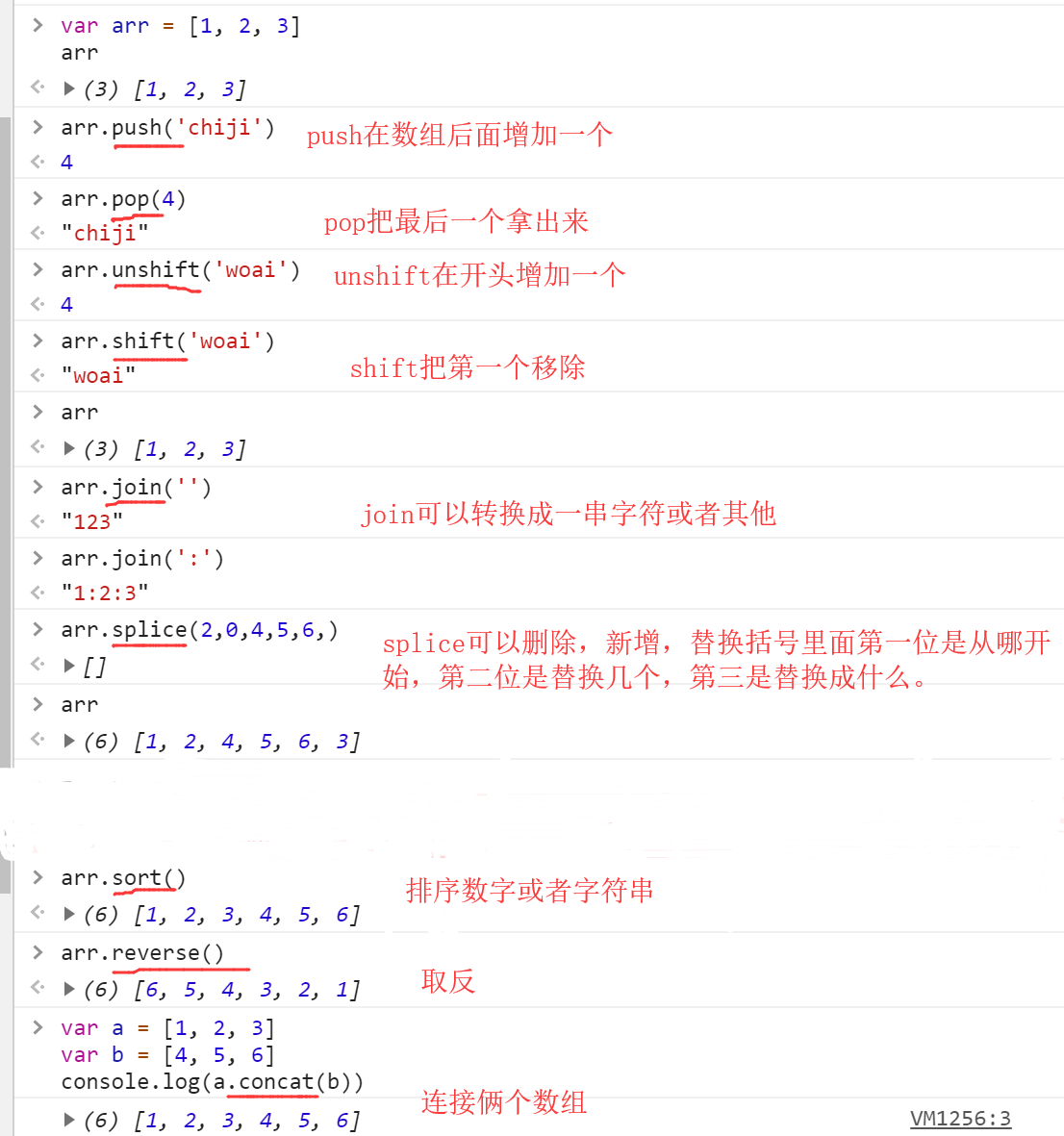 1.分别举例说明数组方法push、pop、shift、unshift、join、splice、sort、reverse、concat的作用?