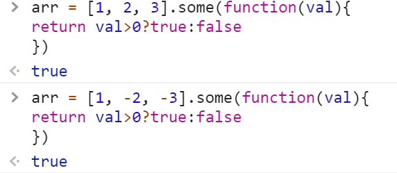 eg: .every 当一个数组全部为正数时输出true,否则为false。