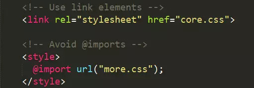与 <link> 标签相比,@import 指令要慢很多,不光增加了额外的请求次数,还会导致不可预料的问题。