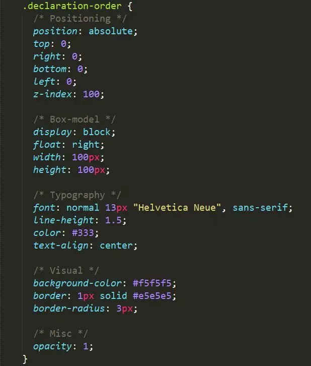 (8)对于以逗号分隔的属性值,每个逗号后面都应该插入一个空格(例如 ,box-shadow)。