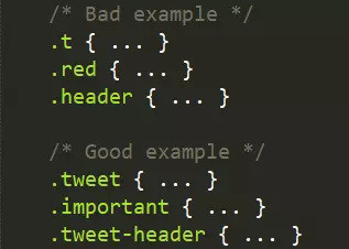 (2)避免过度任意的简写。.btn 代表 button,但是 .s 不能表达任何意思。