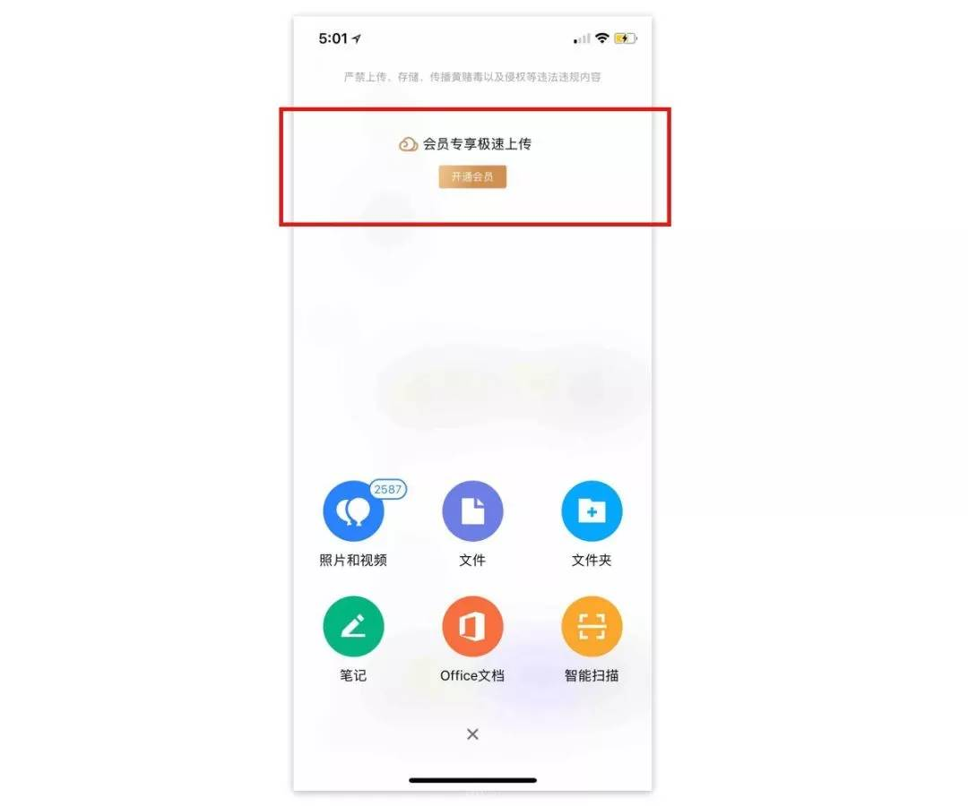 再比如:微云,在沉浸模式下,可以植入自己的“会员”广告,从而提升会员转化。