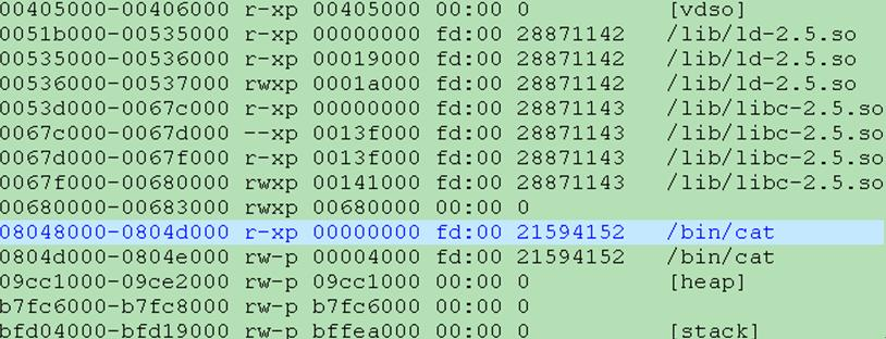 通过cat /proc/self/maps命令查看加载表如下: