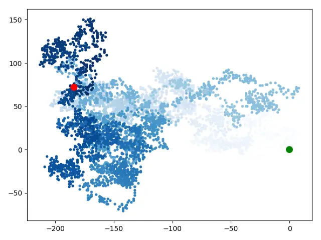 创建一个RandomWalk实例,并将其包含的点都绘制出来