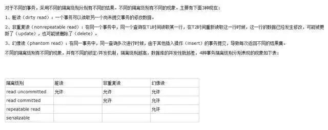 SQL标准定义的四个隔离级别为:
