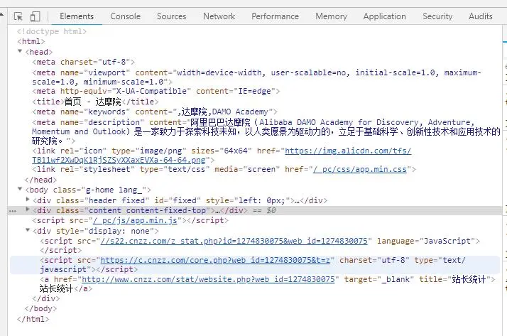 看了console,肯定也就看看Elements,总得来说比较中规中矩,没有太依赖第三方的库,整体当然看了一下大概在新闻动态那边用了swiper组件,当然最后面还加了一个【友盟+】cnzz的站长统计