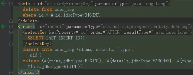 点击绿色的箭头直接跳转到了mapper xml对应的方法了,如下图所示: