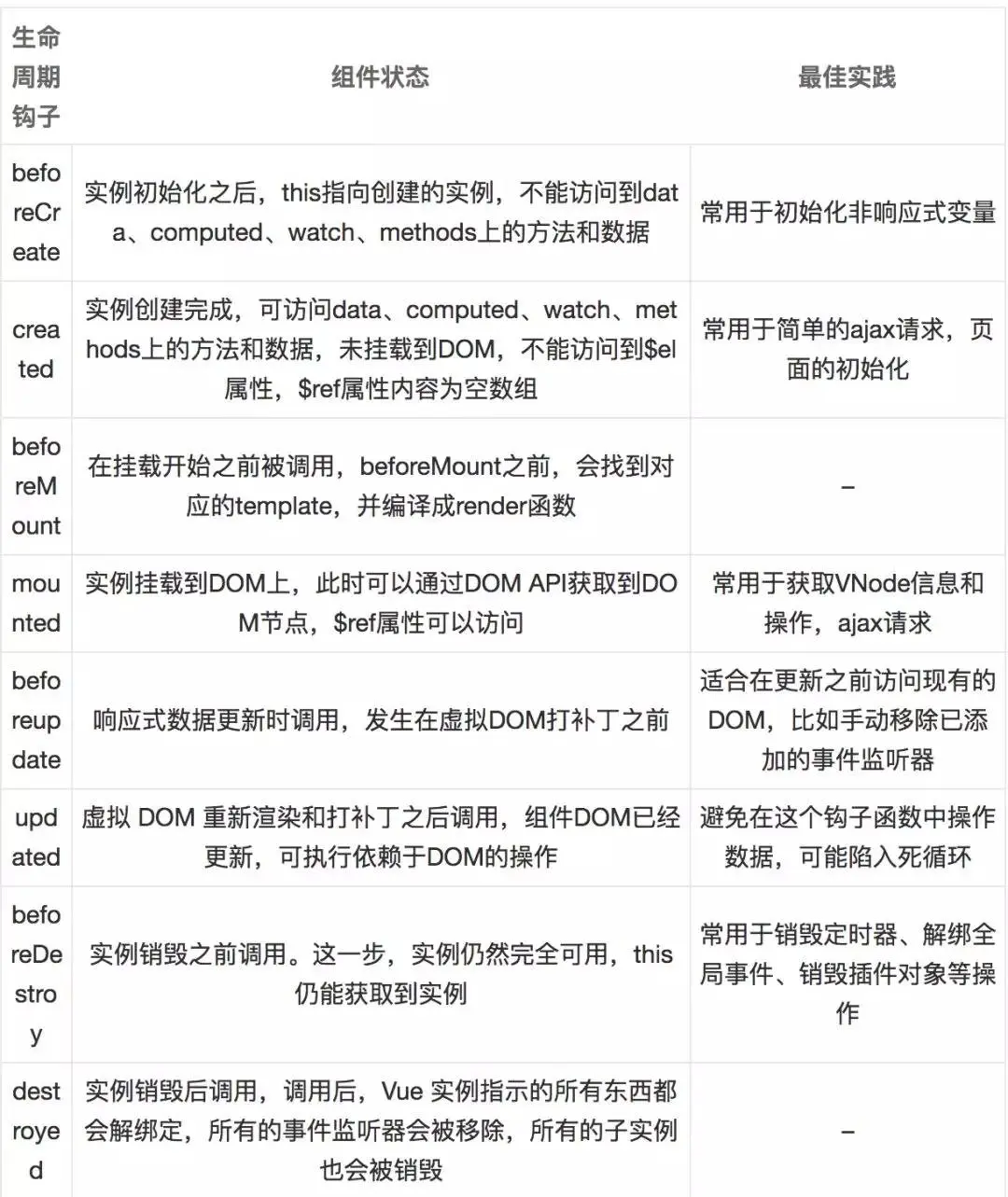 created阶段的ajax请求与mounted请求的区别:前者页面视图未出现,如果请求信息过多,页面会长时间处于白屏状态