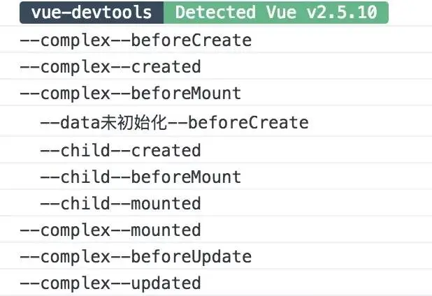 初始化组件时,仅执行了beforeCreate/Created/beforeMount/mounted四个钩子函数