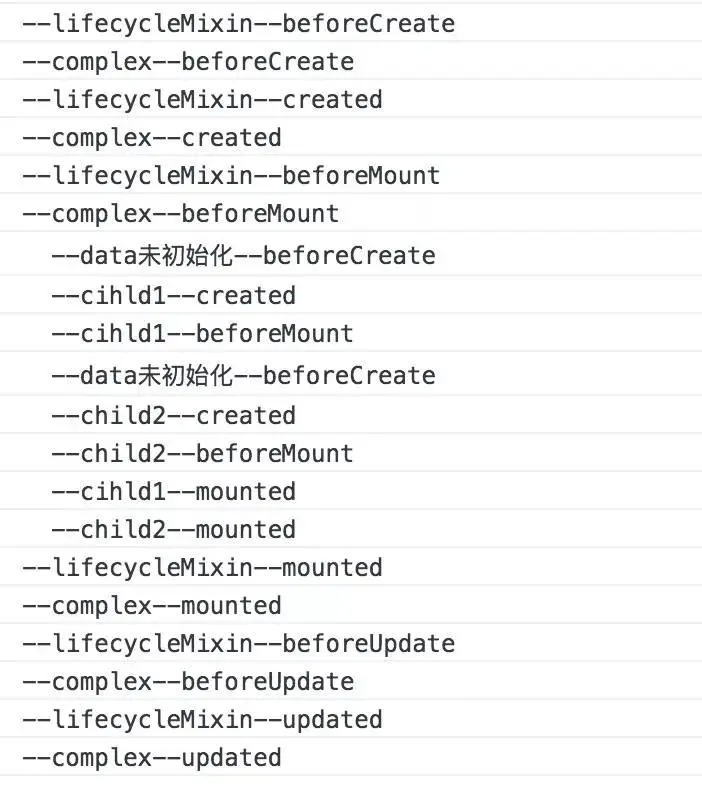 mixin中的生命周期与引入该组件的生命周期是仅仅关联的,且mixin的生命周期优先执行