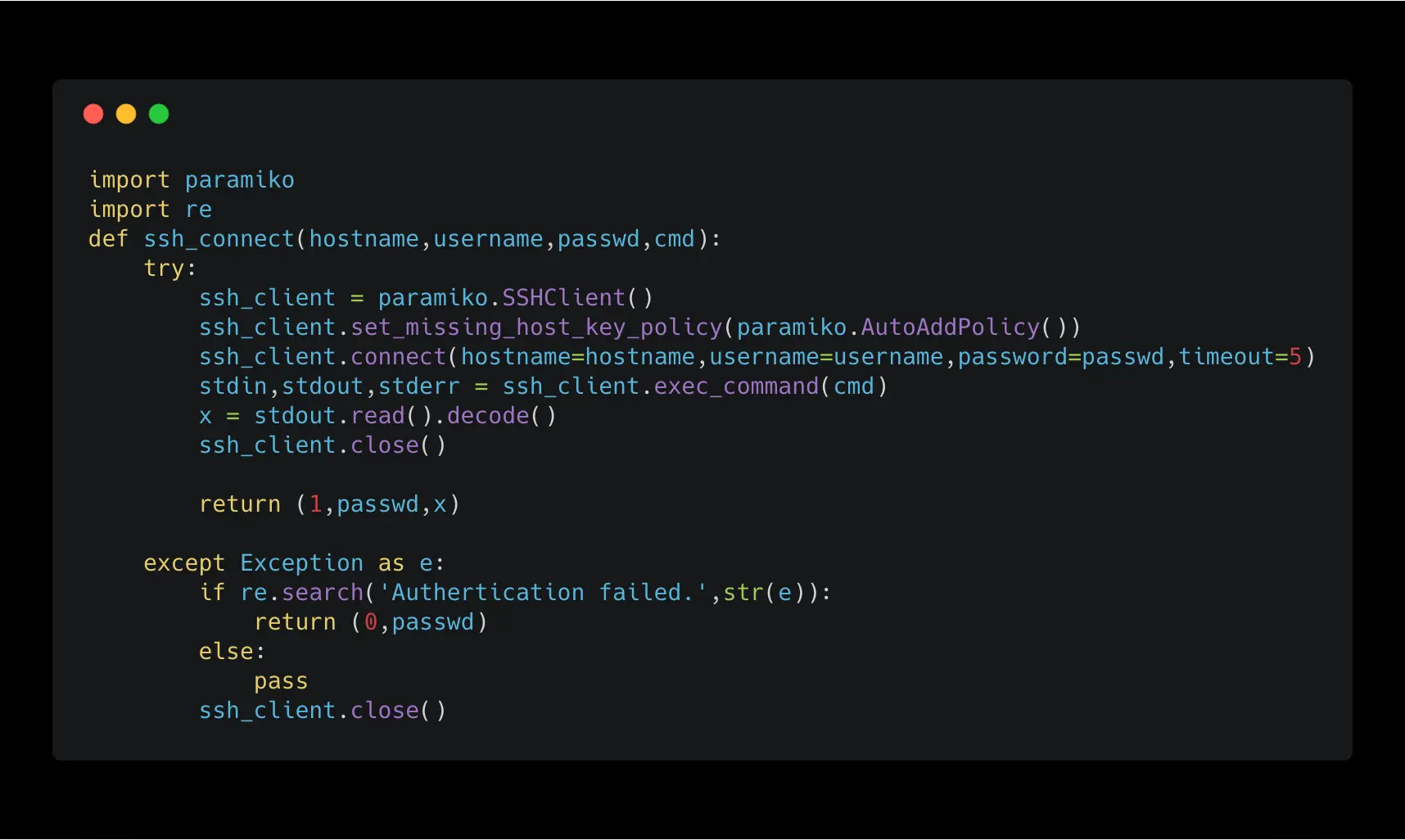 ssh_client.connect(hostname=’hostname’,username='username',password=’mypassword’)