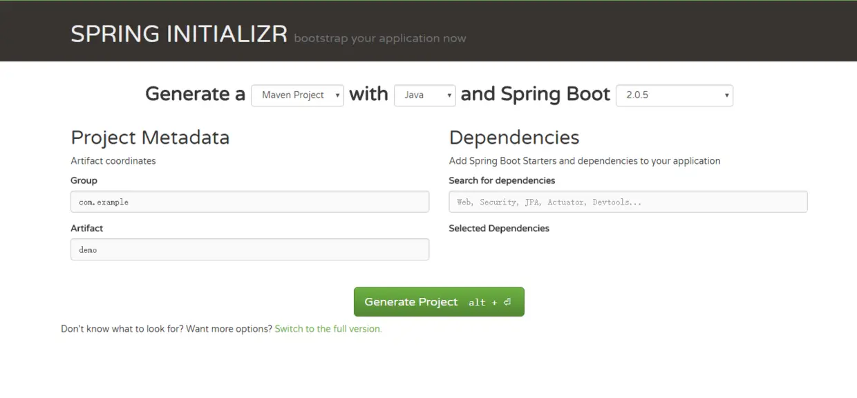访问https://start.spring.io/。