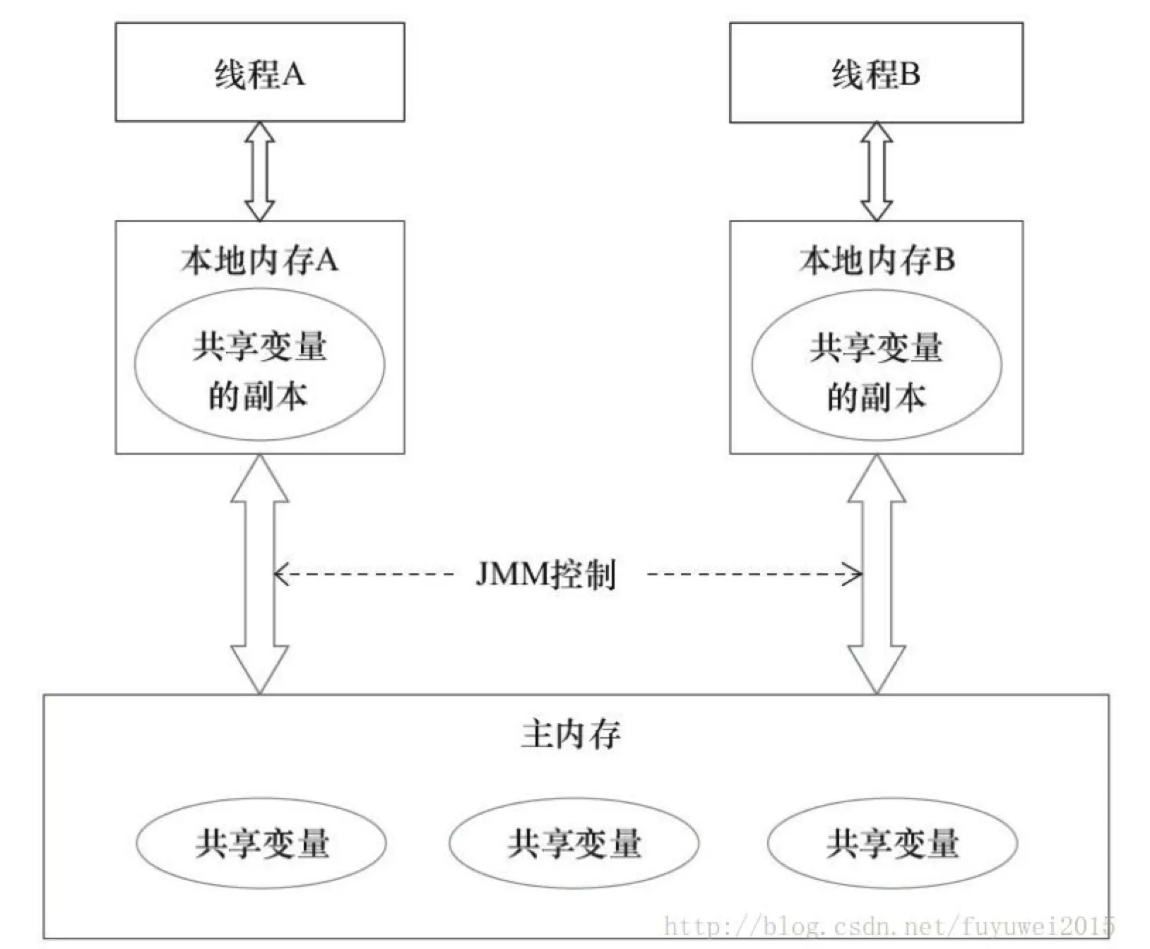 - 每个线程都有独立的工作内存,并对其他线程是不可见的。线程执行如用到某变量,将变量从主内存复制到工作内存,对变量操作完成后再将变量写回主内存。