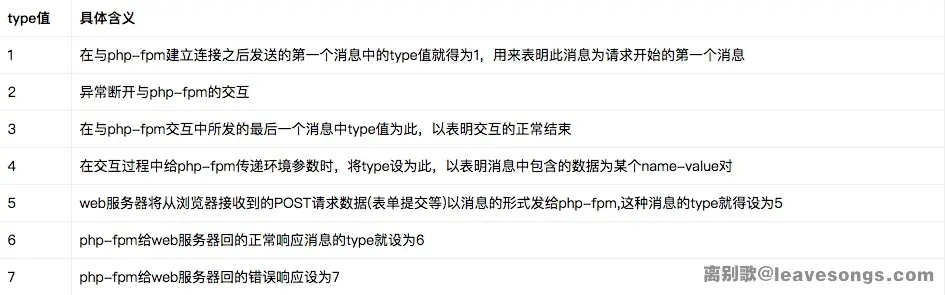 为什么我只介绍type为4的record?因为环境变量在后面PHP-FPM里有重要作用,之后写代码也会写到这个结构。type的其他情况,大家可以自己翻文档理解理解。