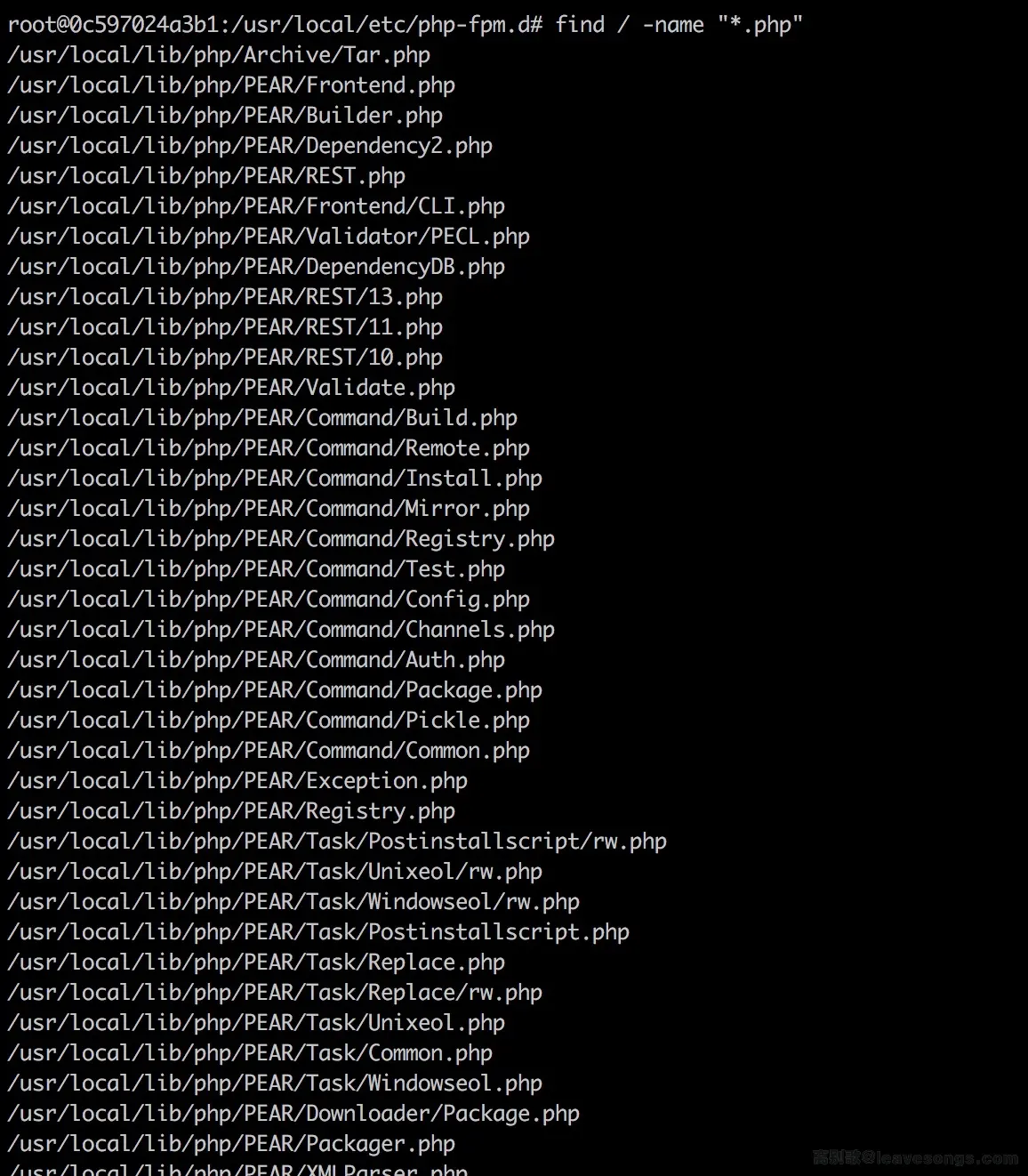 万幸的是,通常使用源安装php的时候,服务器上都会附带一些php后缀的文件,我们使用find / -name "*.php"来全局搜索一下默认环境: