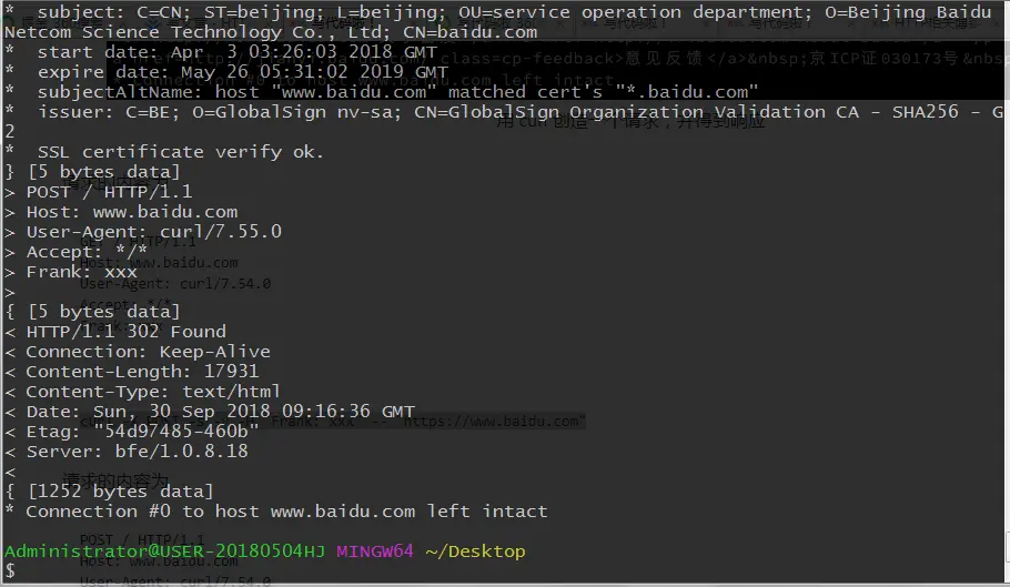 ### 请求实例 curl -s -v -H "Frank: xxx" -- "https://www.baidu.com"