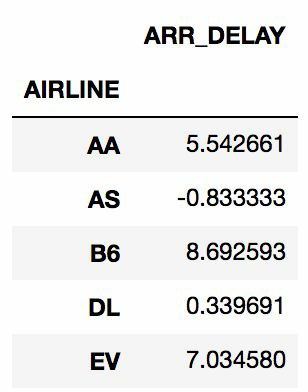 In[3]: flights.groupby('AIRLINE').agg({'ARR_DELAY':'mean'}).head()