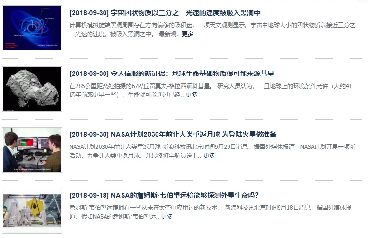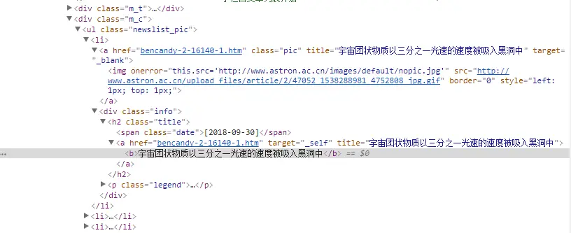 以 www.astron.ac.cn/list-2-1.ht… 为例,光标移动到第一篇文章的标题 “宇宙团状物质以三分之一光速的速度被吸入黑洞中” 处,