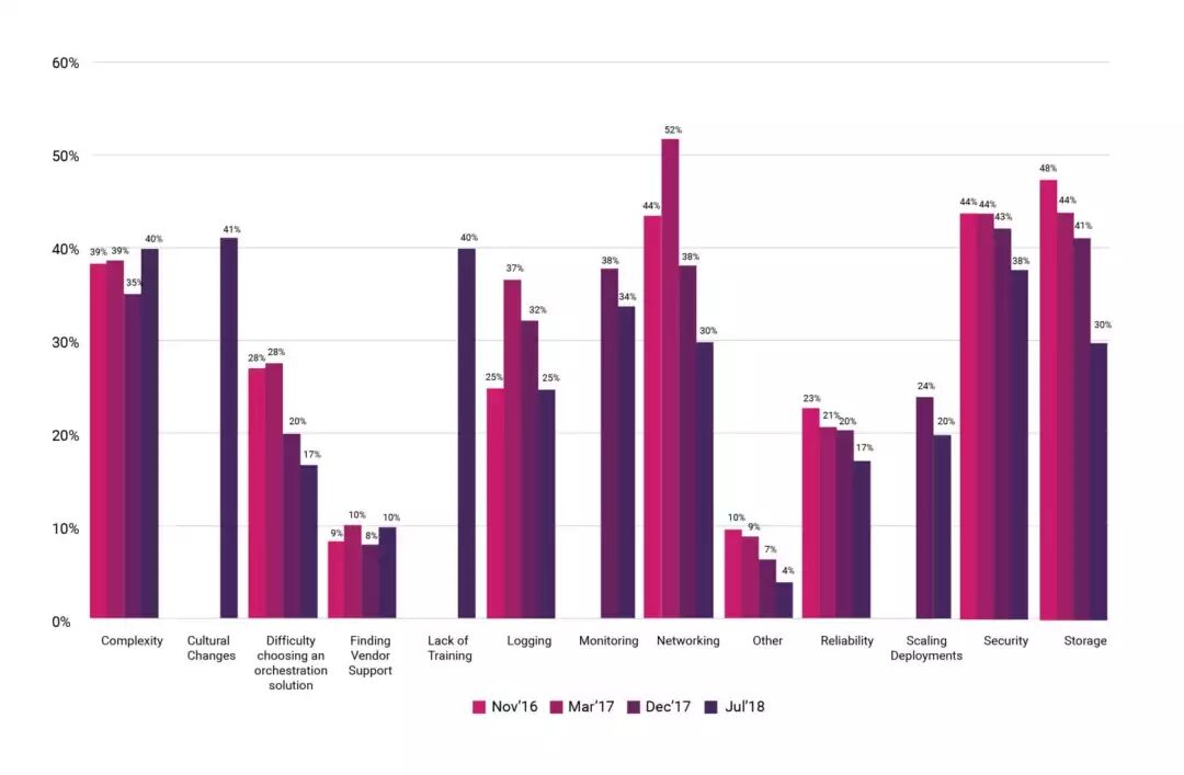 云原生技术改变了企业设计,构建应用的方式,挑战也是无法避免的。受访者反馈所面临的挑战主要有: